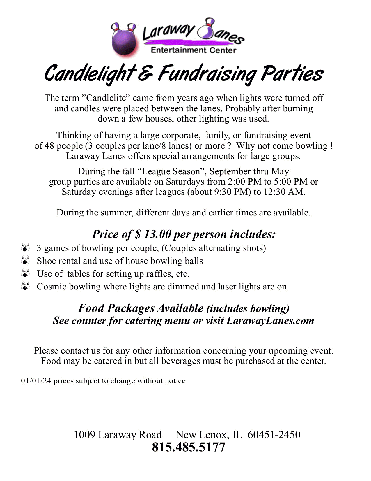 Laraway Lanes 1009 West Laraway Road New Lenox, IL 60451 815.485.5177